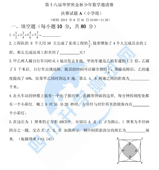 第十六届“华杯赛”小学组决赛试题A