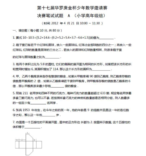 第十七届“华杯赛”小高组决赛试题A