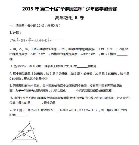 第二十届“华杯赛”小高组决赛试题B