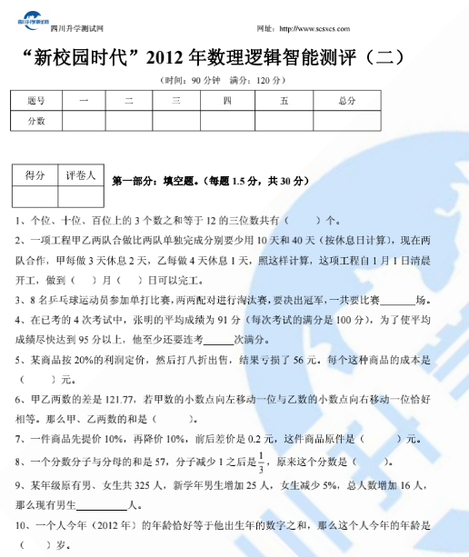 “新校园时代”2012年数理逻辑智能测评(二)