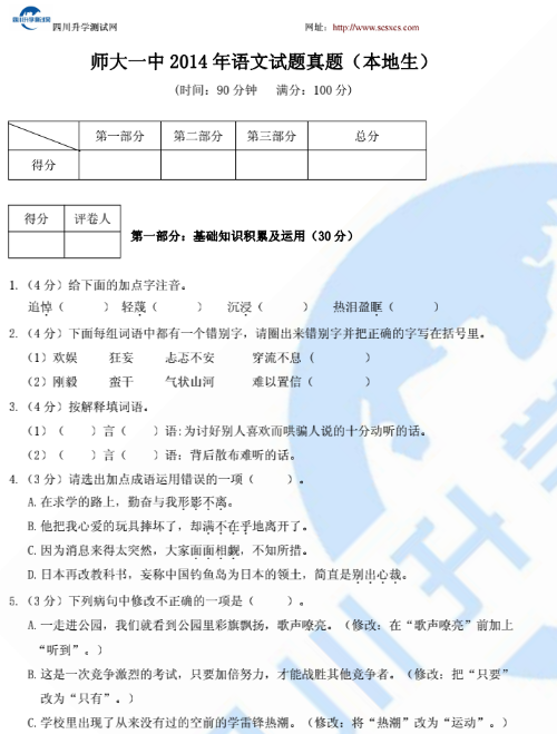 2014师大一中语文本地生