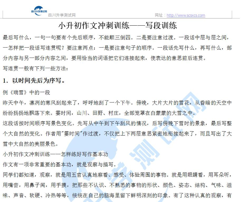 小升初作文冲刺训练——写段训练