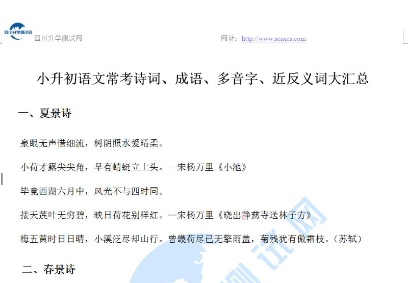 小升初语文常考诗词、成语、多音字、近反义词大汇总