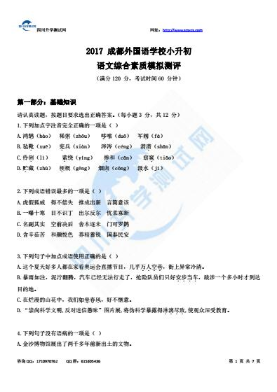 2017 成都外国语学校小升初语文综合素质模拟测评