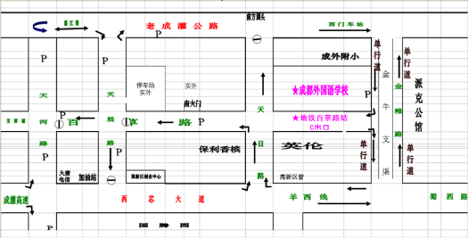 一、请家长尽量选择乘坐地铁2号线,于百草路站C出口将学生提前送达成都外国语学校。