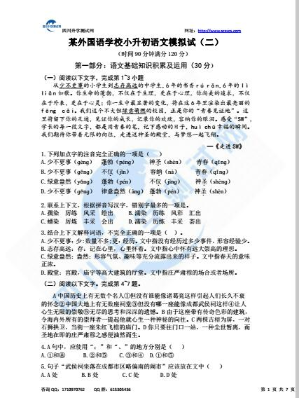 某外国语学校小升初语文模拟试题二