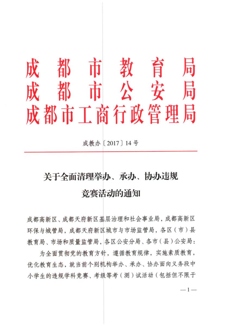 关于全面清理举办、承办、协办违规竞赛活动的通知